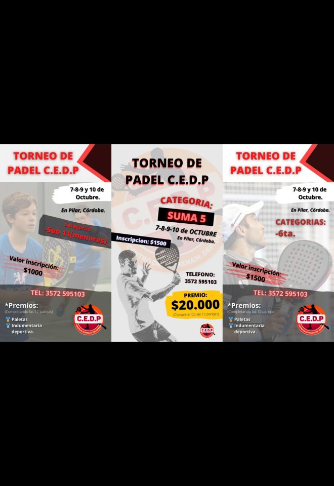»» Evento: Torneo de Padel C.E.D.P. »» Localidad: Pilar | Río Segundo »» Fechas: 06/10/2021 al 10/10/2021